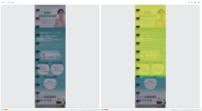 また同様にヒートマップの分析でも(※Ptengineなどの有料分析ツールの利用が必要)、それぞれヒートマップの出力結果を表示することで、ランディングページに訪れたユーザーが、各媒体でどのようにページ内の動きが違うのか?を可視化して分析することも可能です。